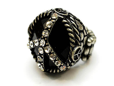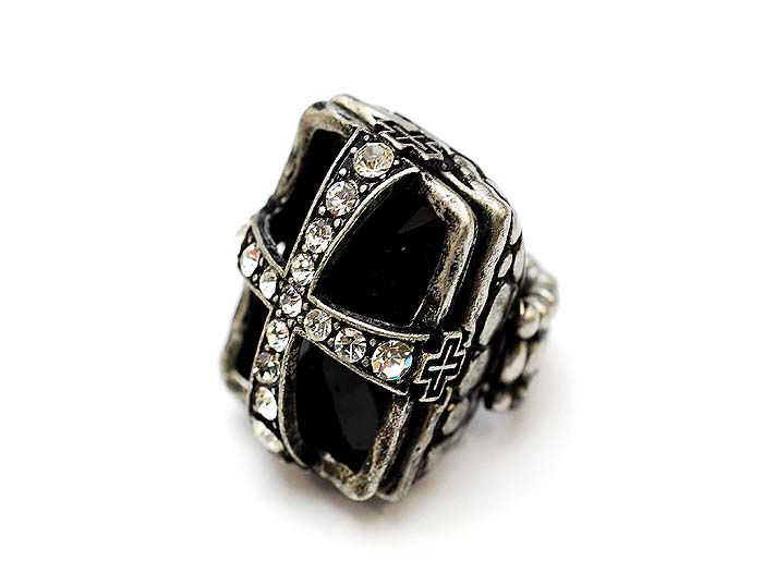 Cross Crystal Ring (Black)